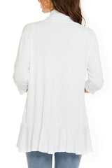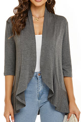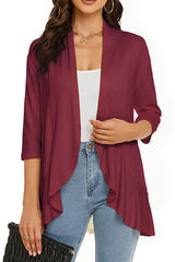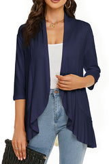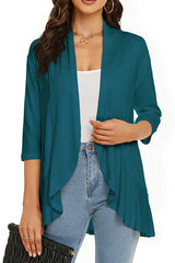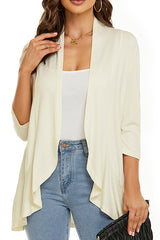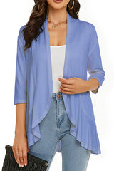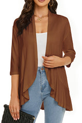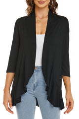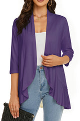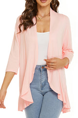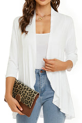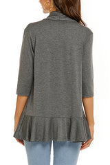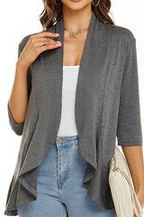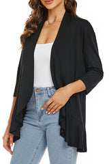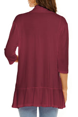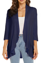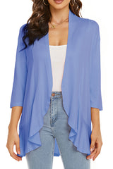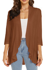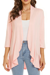 Solid color casual three-quarter sleeve ruffled loose cardigan