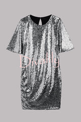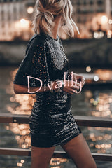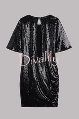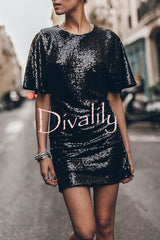 - This sequined mini dress features a flowing skirt that gently drapes the body, with cascading pleats at the waist and hips to accentuate your figure and instantly make you the center of attention. The back boasts a piping and buckle design incorporating elastic fibers for a comfortable and form-fitting fit.Our distinctive clothing will add instant style to your wardrobe.