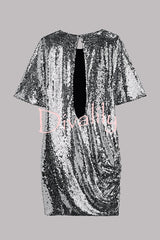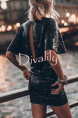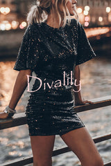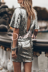 Countdown celebration sequin short bell sleeve open back ruched mini dress