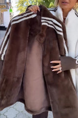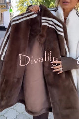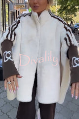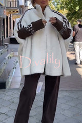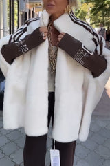 Fashion sports stripe print and ribbed embroidered long sleeve zipper stand nack pocket plush coat