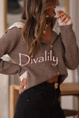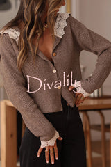 Fashionable lace-trimmed sailor collar casual knit cardigan