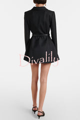 Parisian style double-breasted long sleeve flare hem lapel blazer mini dress
