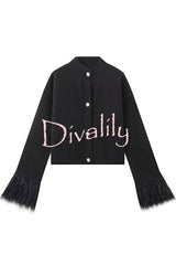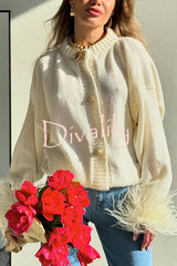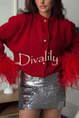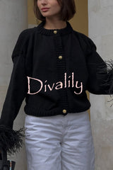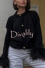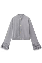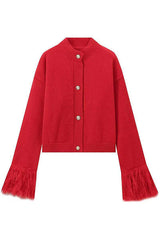 Solid color elegant feather long sleeve casual knitted cardigan