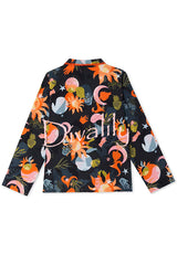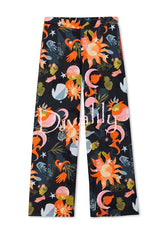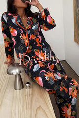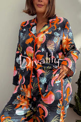Evening routine unique print color-block trim loose shirt and elastic waist pocketed pajama set