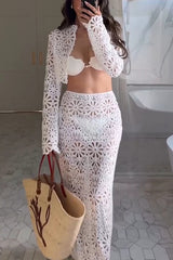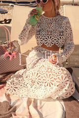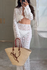 Balmy summers crochet lace floral pattern elastic waist fishtail vacation maxi skirt