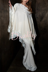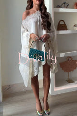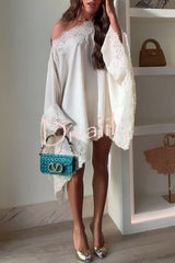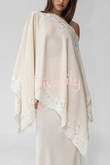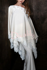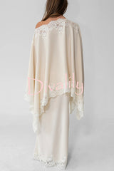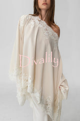 Like a swan satin lace trim off shoulder wide sleeve cape top