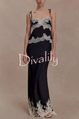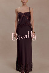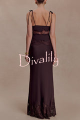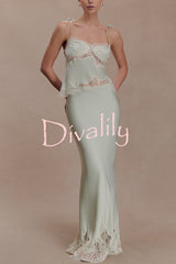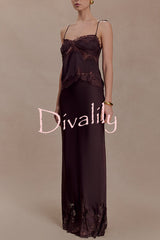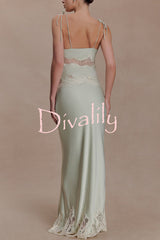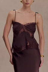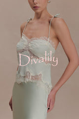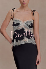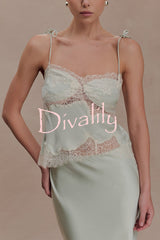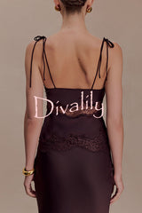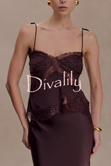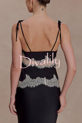 Nina satin lace detail thin tie up straps loose tank