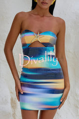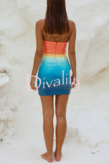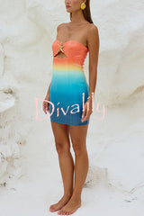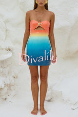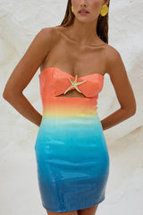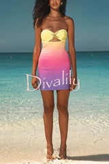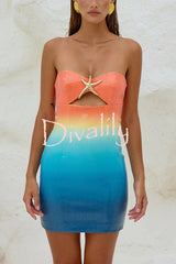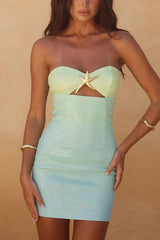 Gradient sequin sexy off-the-shoulder hollow slim mini dress