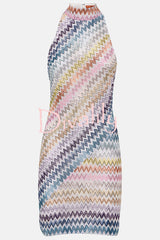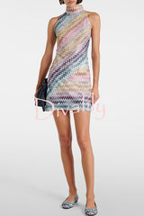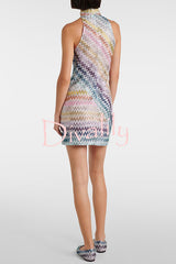 Whimsical moment knit colorful zigzag pattern high neck sleeveless mini dress