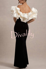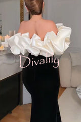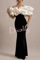 Cecily velvet off shoulder satin structured bardot neck stretch maxi dress
